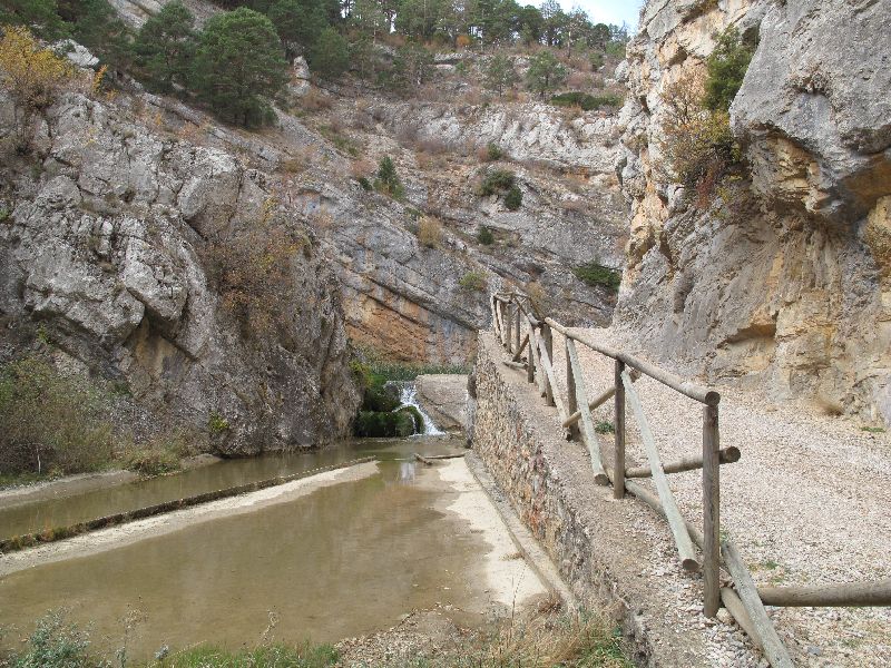 Esta ruta une las localidades de Calomarde y Frías y se puede realizar en ambos sentidos. Coincide con una parte del sendero PR-TE 2 y recorre un impresionante cañón excavado por el río Fuente del Berro, donde se ve el paraje del Moricacho, presas, barrancos y frondosos pinares para llegar al hermoso paisaje que rodea al Molino de las Pisadas. El tramo de sendero que discurre por el cañón se completa con diversos miradores temáticos con información sobre las aves, la vegetación y la geología. Más cerca de Frías se encuentra información sobre el Molino de las Pisadas y una antigua tejería, los aprovechamientos forestales en la comarca, la Reserva de Caza y sobre los refugios ganaderos de la zona. Junto al pueblo, otro mirador ayuda a interpretar el paisaje característico. La parte de este sendero más próxima a Frías tiene una variante por el PR-TE 2.